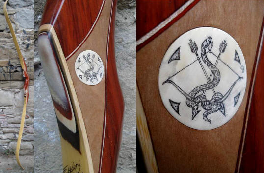 supporto in dente di ippopotamo fossile su riser di arco ricurvo
