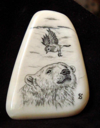 placca in osso incisa ancora da montare su un riser di longbow