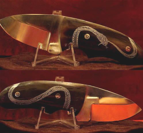 in reverse scrimshaw su manico in corno di bufalo biondo