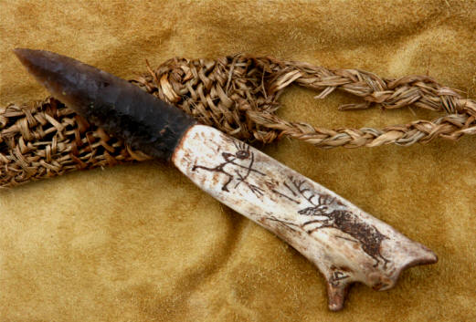 Il disegno è eseguito su manici di palco di cervo e renna,